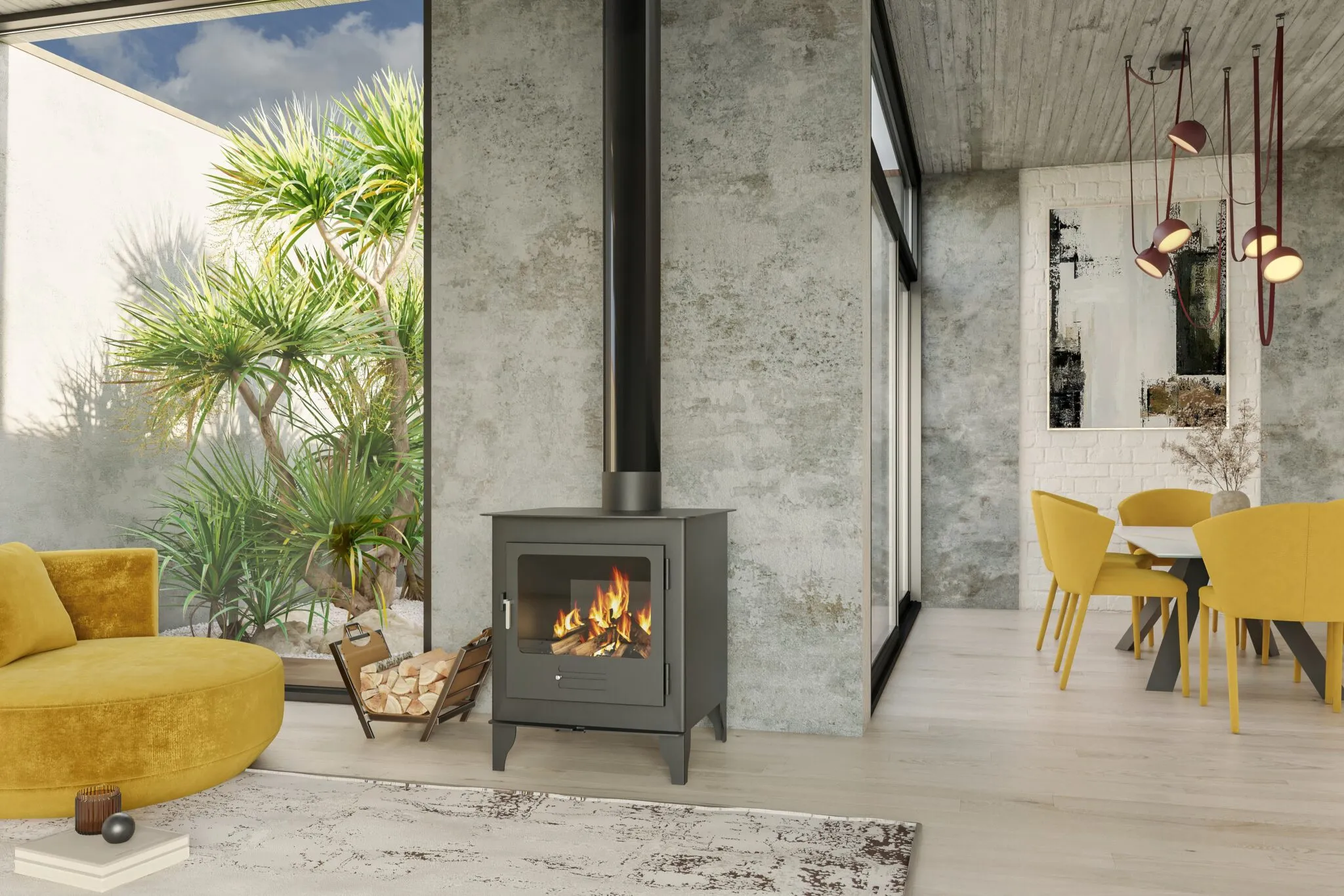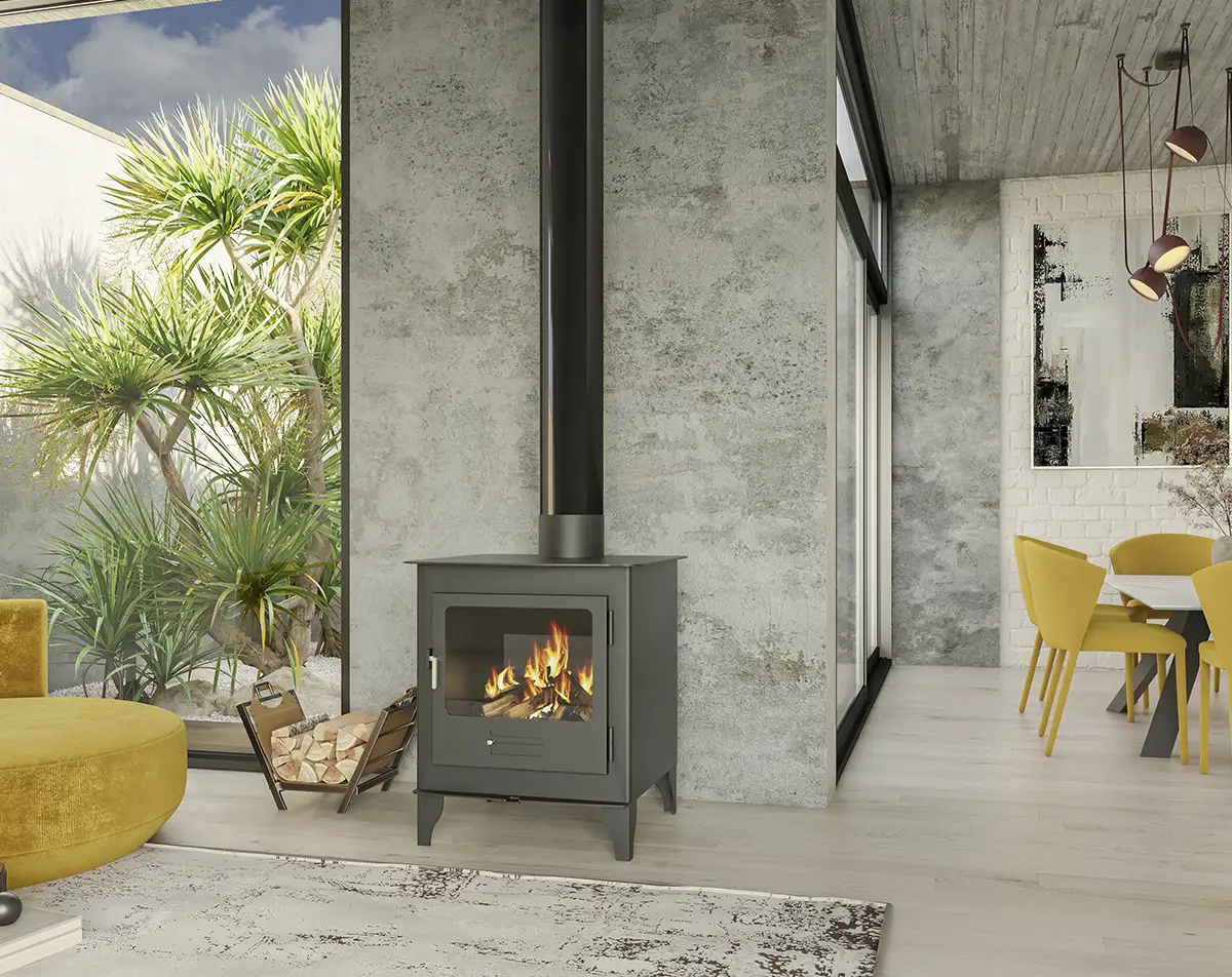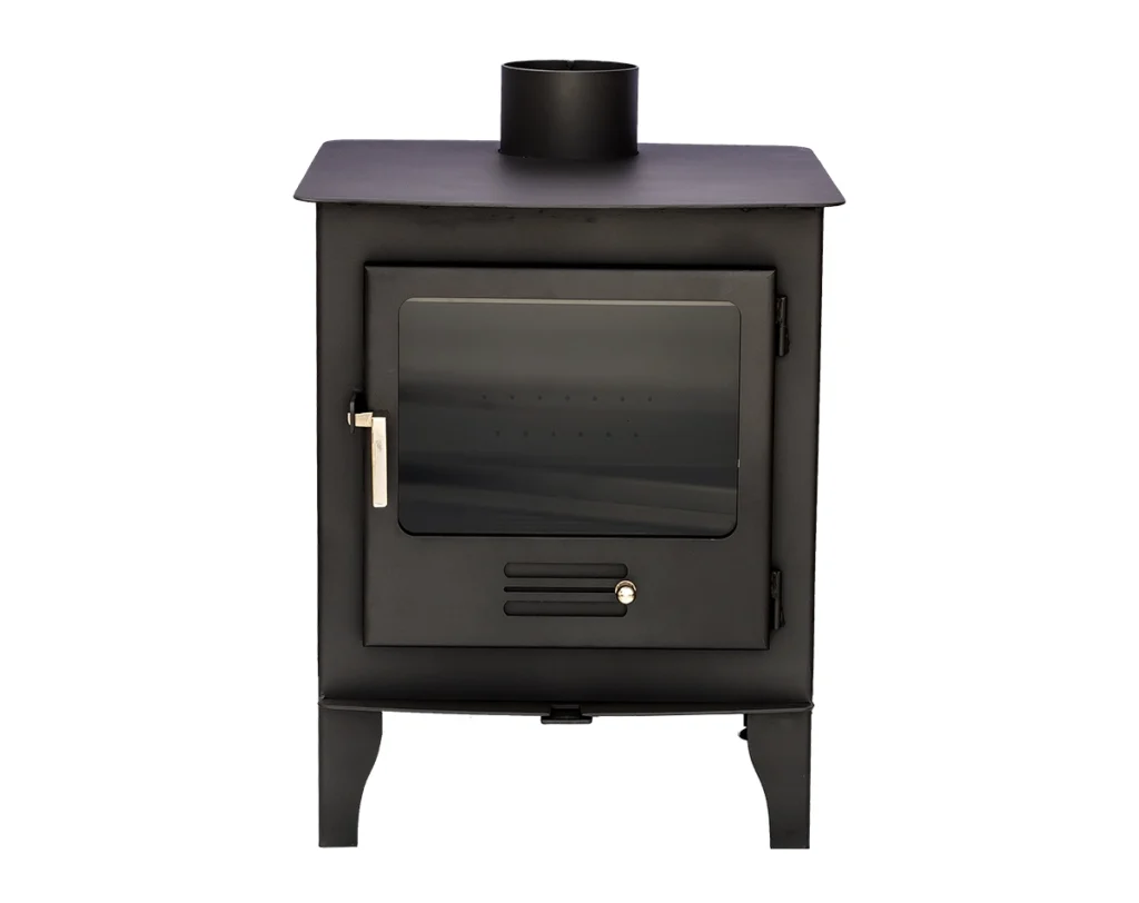 Estufa de leña de estilo tradicional y funcionamiento por convención natural sin necesidad de conexión de la red eléctrica. Sistema de triple combustión, diseñada conforme a la normativa Europea ECODESIGN 2022, con una potencia calorífica de 8 kw y clasificación energética A+. Diseñada para cualquier tipo de estancia con unas medidas de 655 mm (alto) x 535 mm (ancho) x 525 mm (fondo). Fabricada en acero de alta calidad. con una garantía de 2 años.