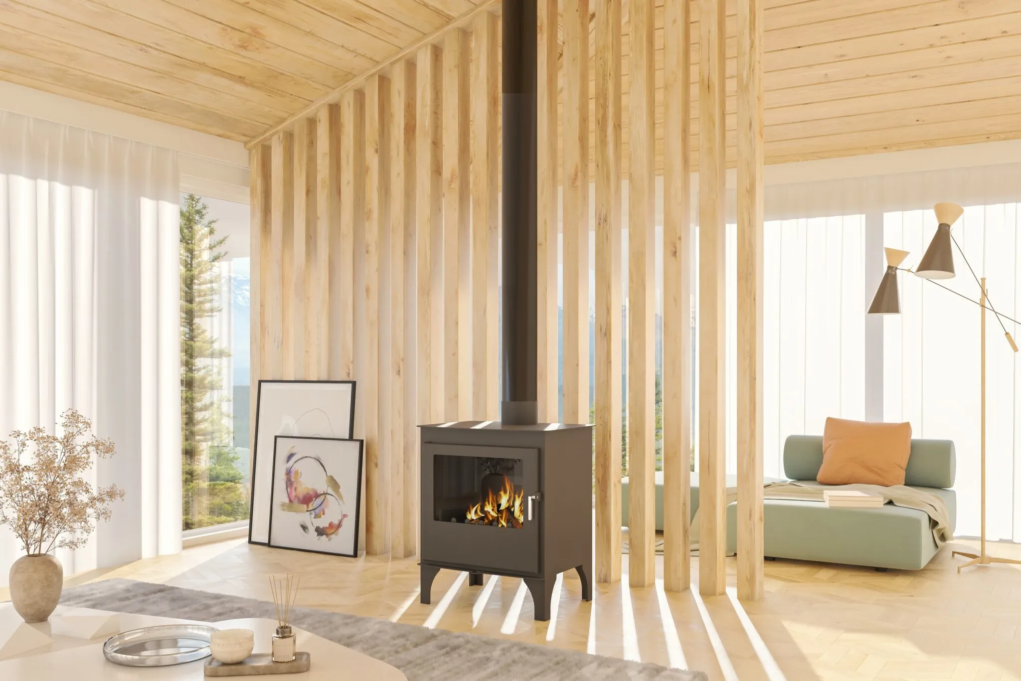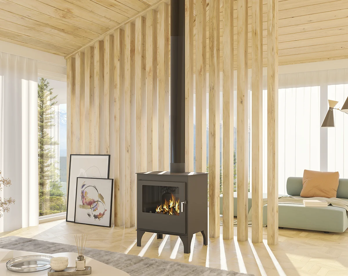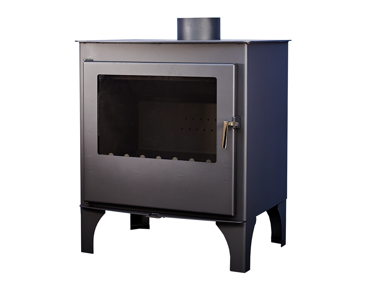Estufa de leña de estilo moderno y funcionamiento por convención natural sin necesidad de conexión de la red eléctrica. Sistema de triple combustión, diseñada conforme a la normativa Europea ECODESIGN 2022, con una potencia calorífica de 11,60 kw y clasificación energética A. Diseñada para cualquier tipo de estancia con unas medidas de 760 mm (alto) x 650 mm (ancho) x 490 mm (fondo). Fabricada en acero de alta calidad. con una garantía de 2 años.