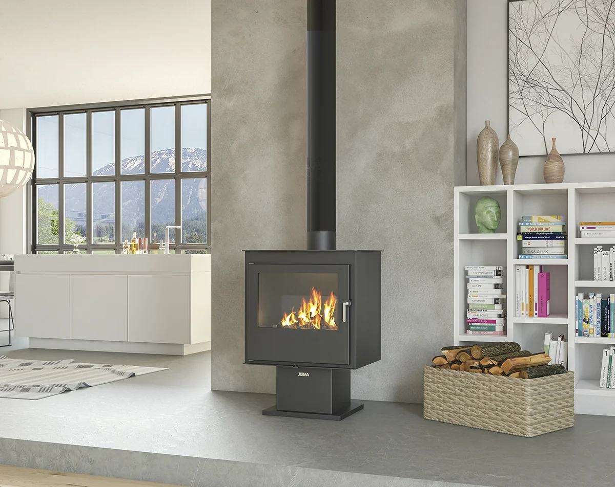 Estufa de leña de estilo moderno y funcionamiento por convención natural sin necesidad de conexión de la red eléctrica. Sistema de triple combustión, diseñada conforme a la normativa Europea ECODESIGN 2022, con una potencia calorífica de 11,60 kw y clasificación energética A. Diseñada para cualquier tipo de estancia con unas medidas de 865 mm (alto) x 650 mm (ancho) x 490 mm (fondo). Fabricada en acero de alta calidad. con una garantía de 2 años.